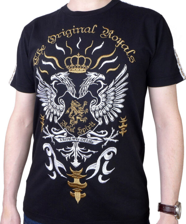 Rebel Spirit „The Original Royals“ (Gold) T-Shirt. Fantastic embroidered artwork, patches. Embroidered text “The Original Royals”. 100% Cotton Knitted. A Royal Way Of Life.